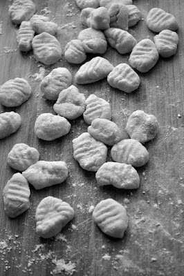 - Je docela možné, že budete potřebovat všechnu mouku ale i naopak, že budete muset přidávat. Vše záleží na velikosti žloutku. Těsto jsem uhnětla a vyválela na 4 válečky o průměru 2 cm. Postupně jsem je rozkrájela a udělala málé nočky. Pomocí vidličky můžete tyto válečky upravit do formy malých nočků.